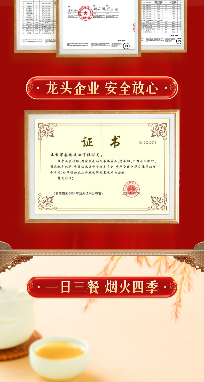 五常市彩桥米业有限公司发布的柴火大院 五常有机大米原粮稻花香2号5kg五常大米图集库