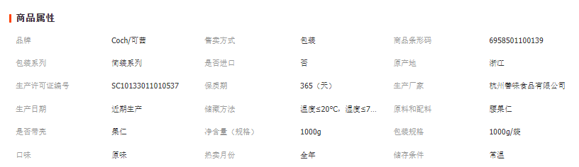 杭州善味食品有限公司发布的烘焙原料批发【Coch/可茜】原味腰果仁1KG/袋越南原料图集库