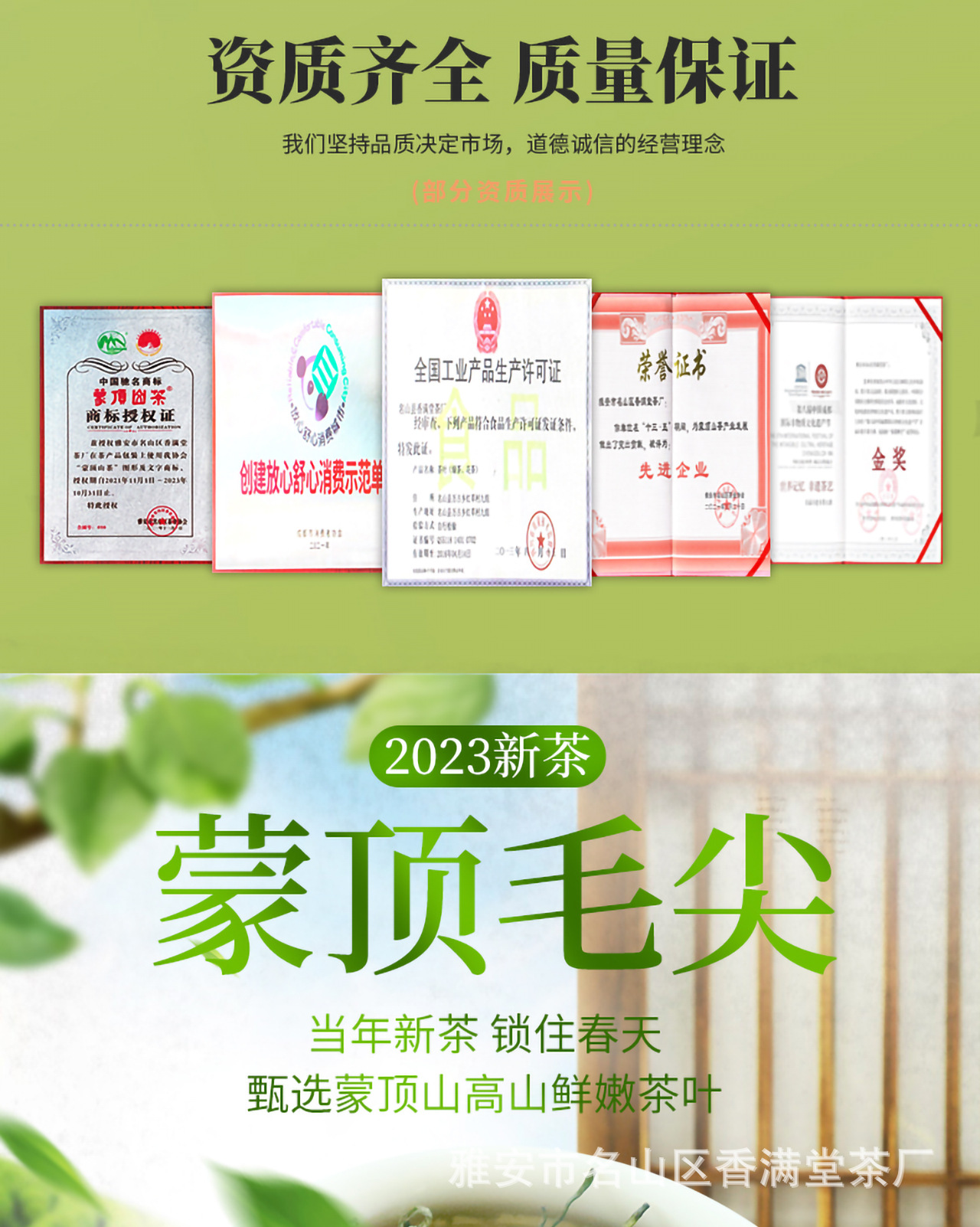 雅安市名山区香满堂茶厂发布的知茶人绿茶毛尖茶叶2023新茶四川蒙顶山浓香型高山毛峰散装500g图集库