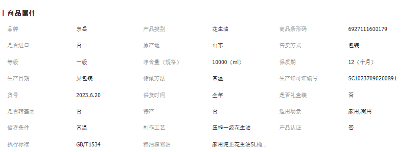 山东方威油脂有限公司发布的东岳花生油优选原料 粮油植物油 商用家用纯正花生油5L桶装花生油图集库