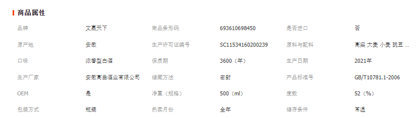 安徽高曲酒业有限公司发布的绵柔52度瓶装酒浓香型光瓶酒500ml装固态法白酒纯粮食酒贡酒图集库