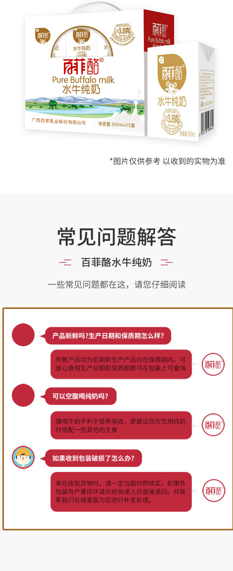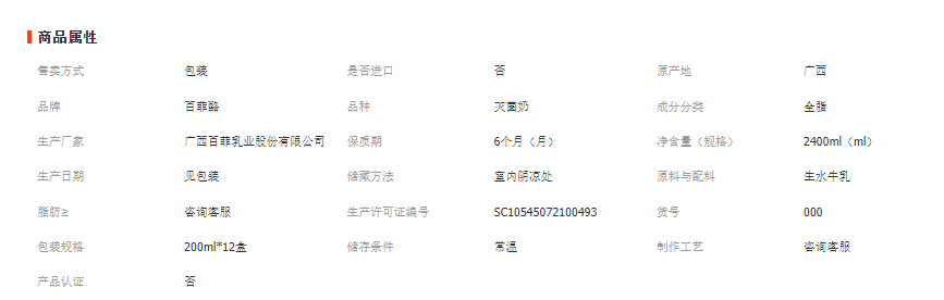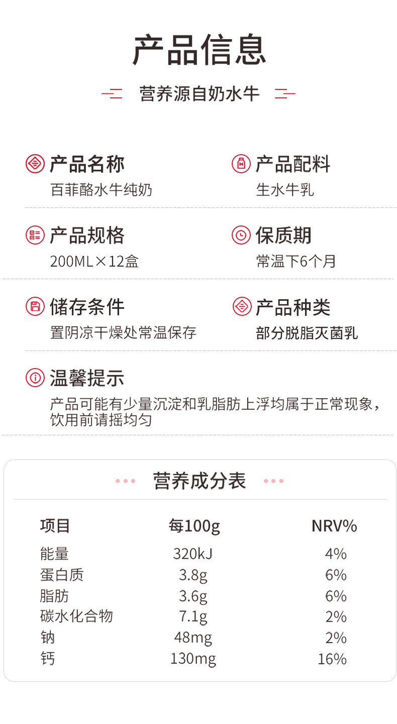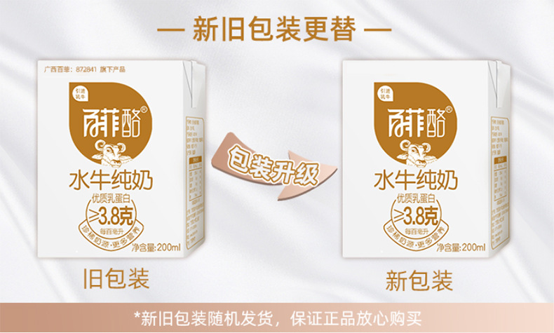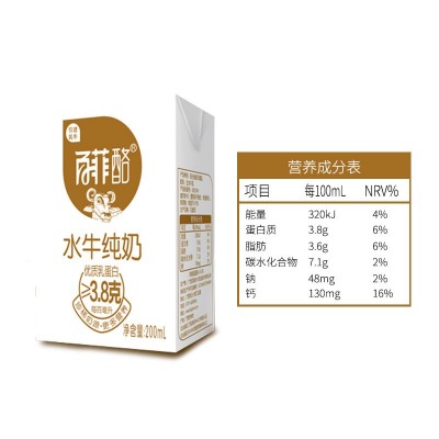 南宁市弘晟欣贸易有限公司发布的百菲酪水牛纯牛奶200ml*12盒百菲乳业3.8g乳蛋白口感好营养丰富图集库