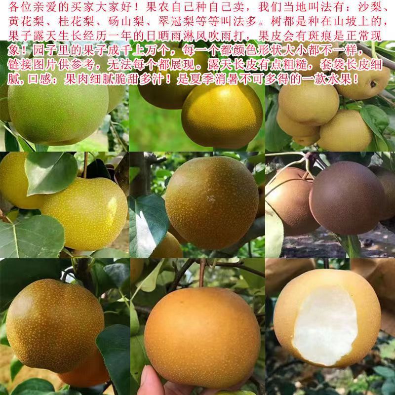 5.沙梨/桂花梨参考规格:中果(1斤3-4个左右);大果(1斤2-3个左右;特大果(2个左右)
