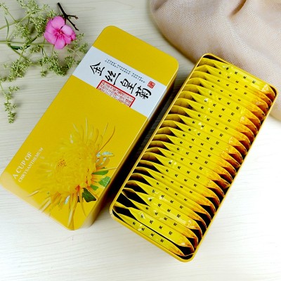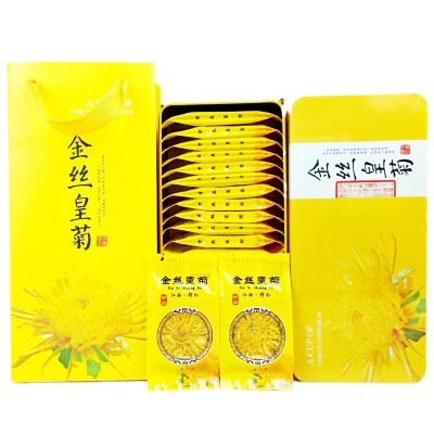 此款为20朵铁盒装金丝皇菊 20朵独立包装+铁盒+手提袋(一朵一杯 泡开7-9cm 比市面上的二星花高两个规格)