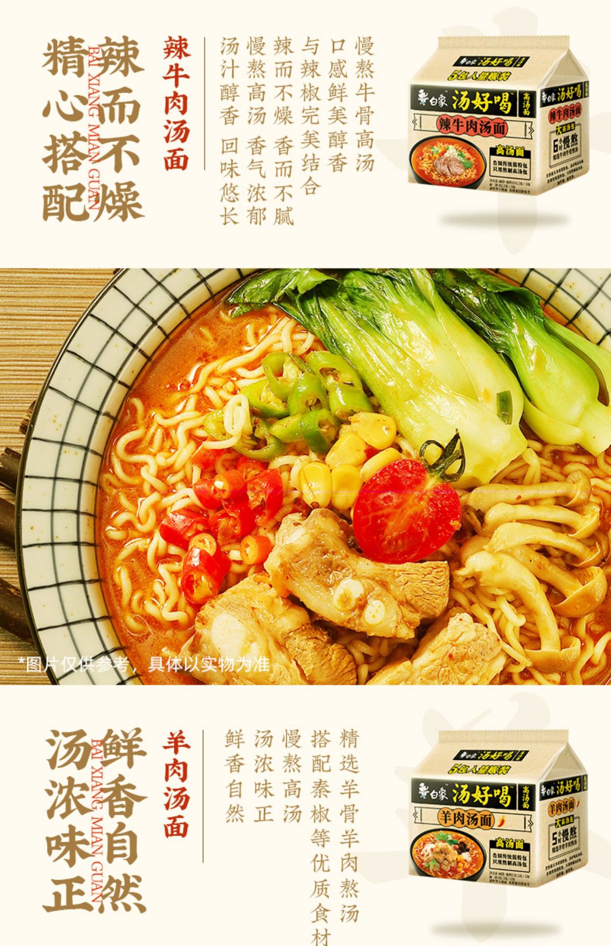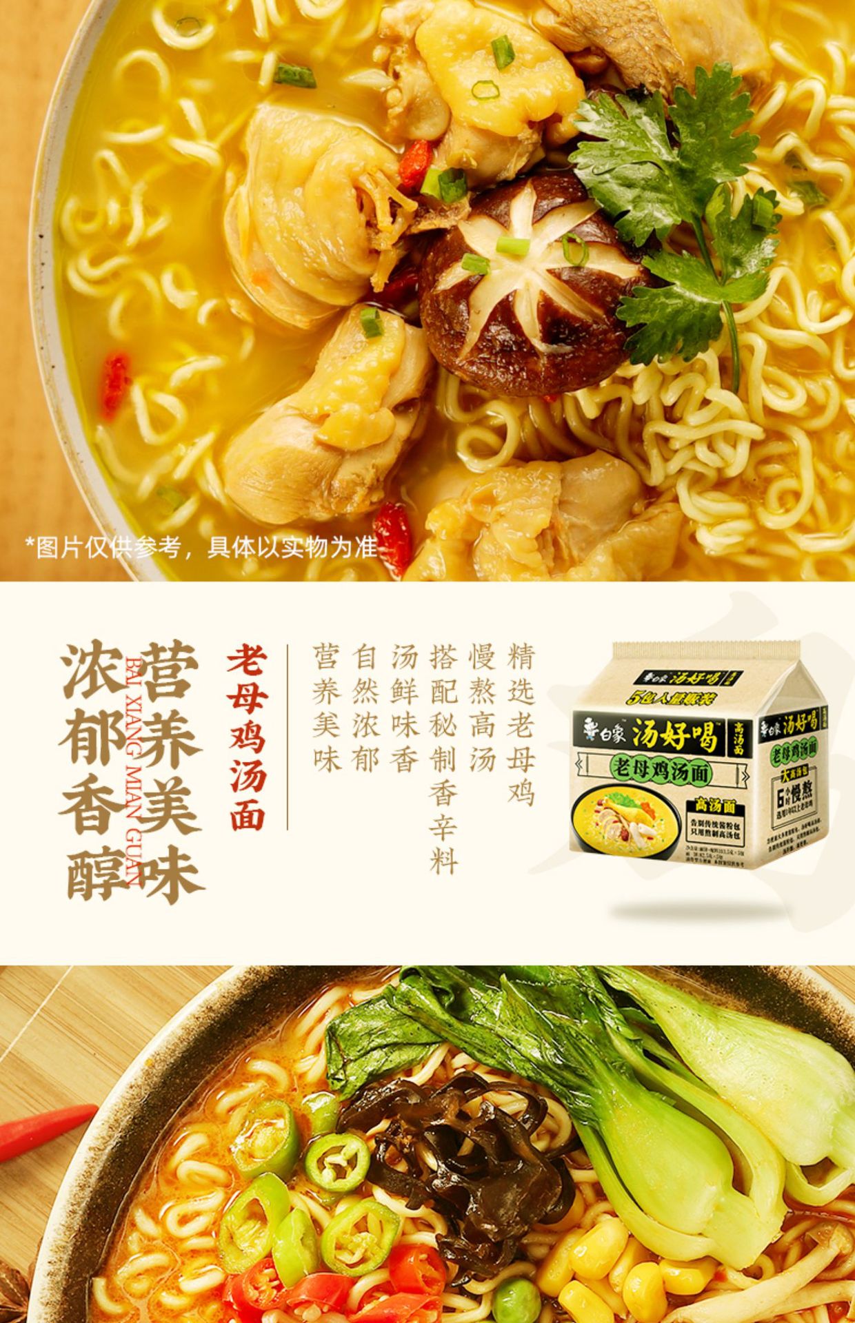 重庆市吉旺食品有限公司发布的【包邮】白象汤好喝方便面老母鸡汤猪骨速食面袋装泡面整箱批发图集库