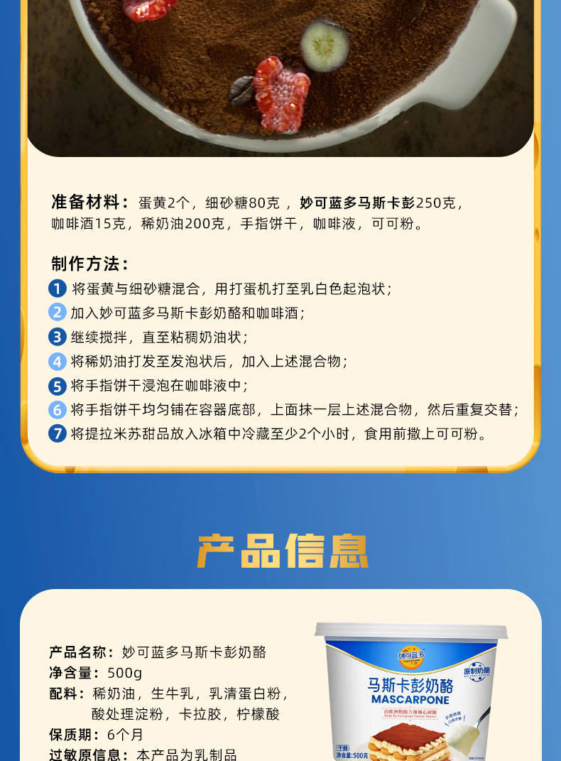上海联拓食品有限公司发布的妙可蓝多马斯卡彭奶酪 原制奶酪 制作提拉米苏原料 500g/250g图集库