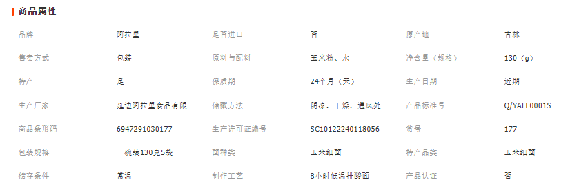 延边阿拉里食品有限公司发布的【阿拉里】纯玉米面条一碗装130克/包0盐0小麦低脂粗粮图集库
